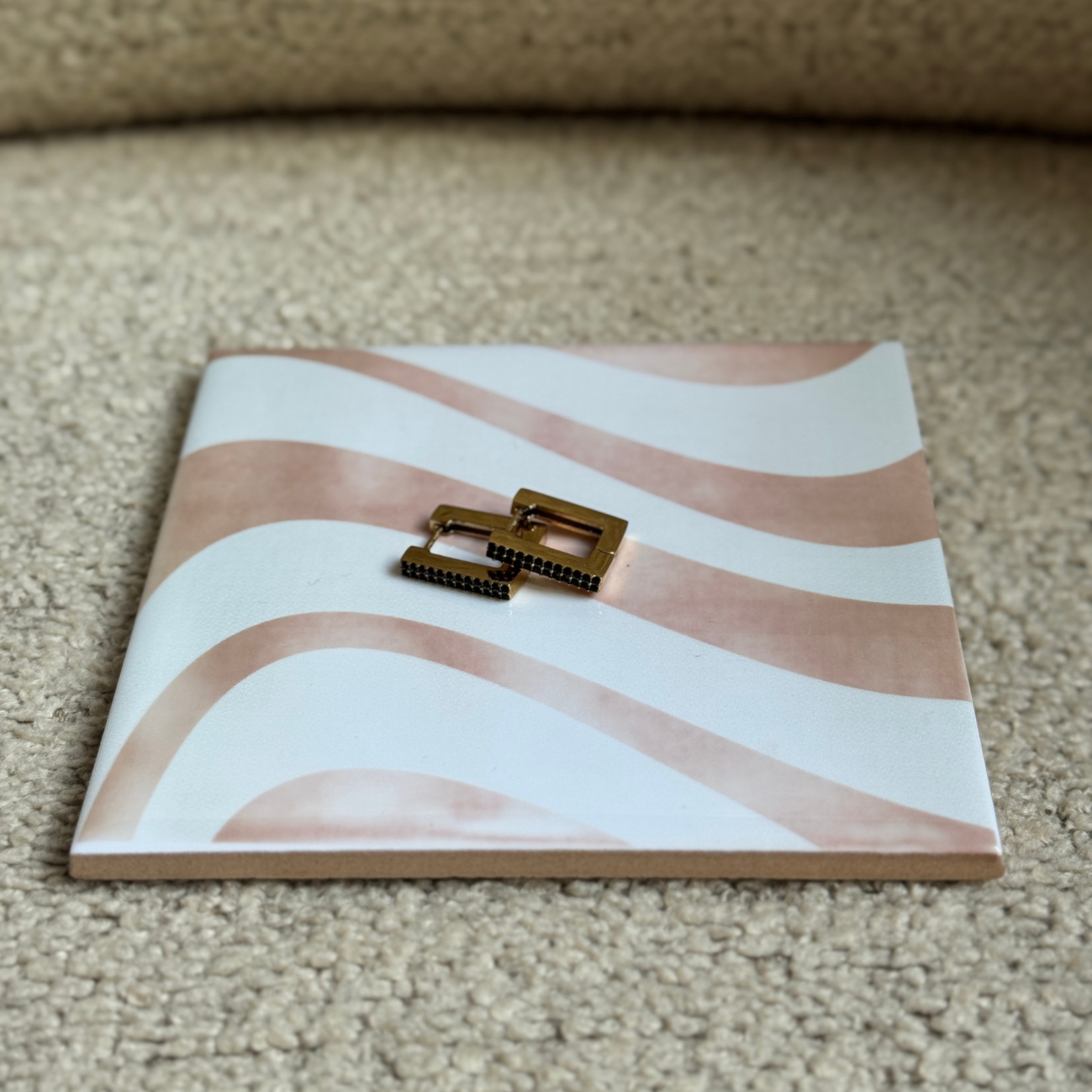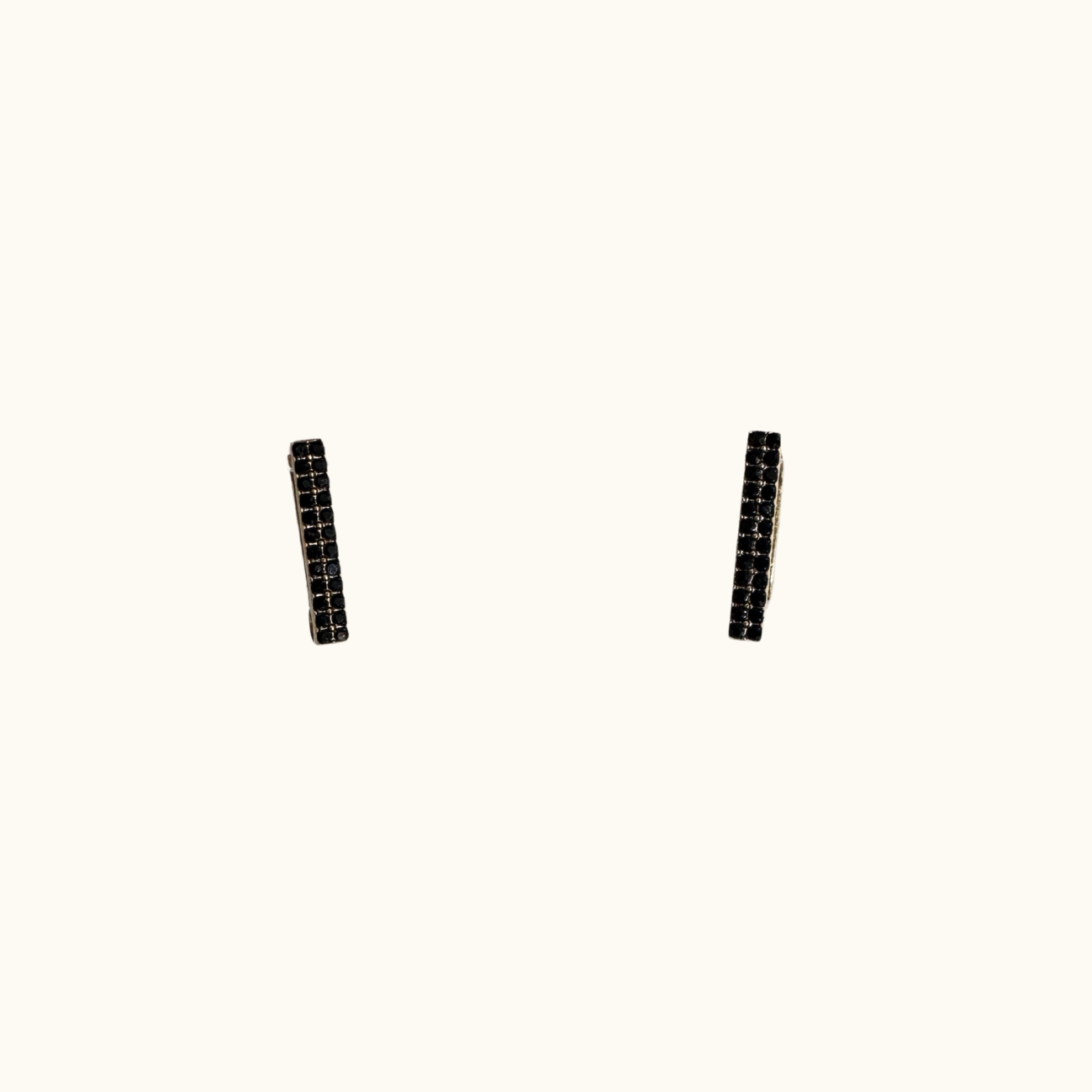 Deze oorbellen hebben een mooie krachtige uitstraling. De zwarte steentjes vangen het licht op subtiele wijze, terwijl de rechte lijnen zorgen voor een modern en verfijnde touch.