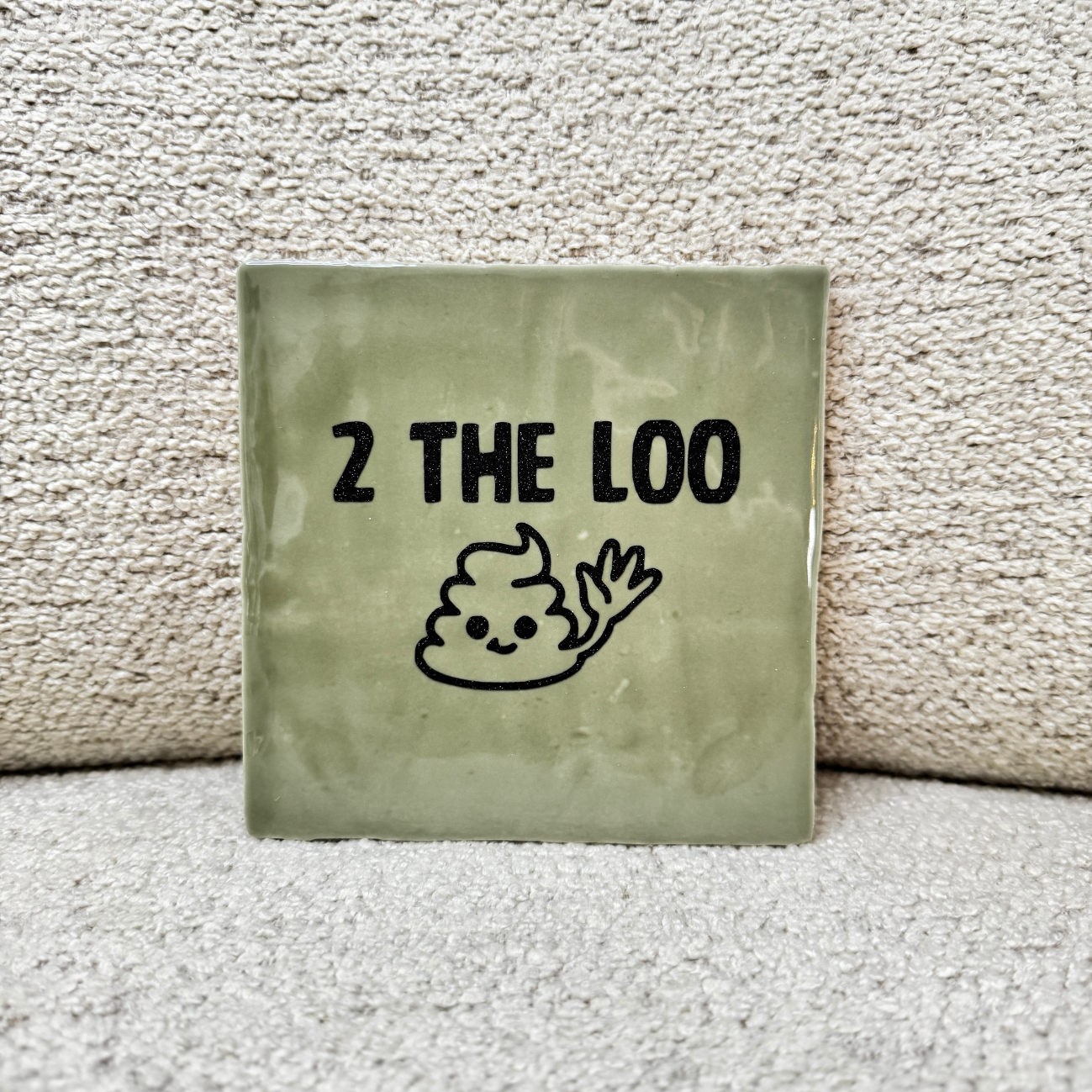 Een knipoog voor op het kleinste kamertje. Dit keramiek tegeltje met de tekst “2 THE LOO” en een vrolijk zwaaiend drolletje maakt ieder toiletbezoek een glimlachmoment. Leuk om neer te zetten of op te hangen.