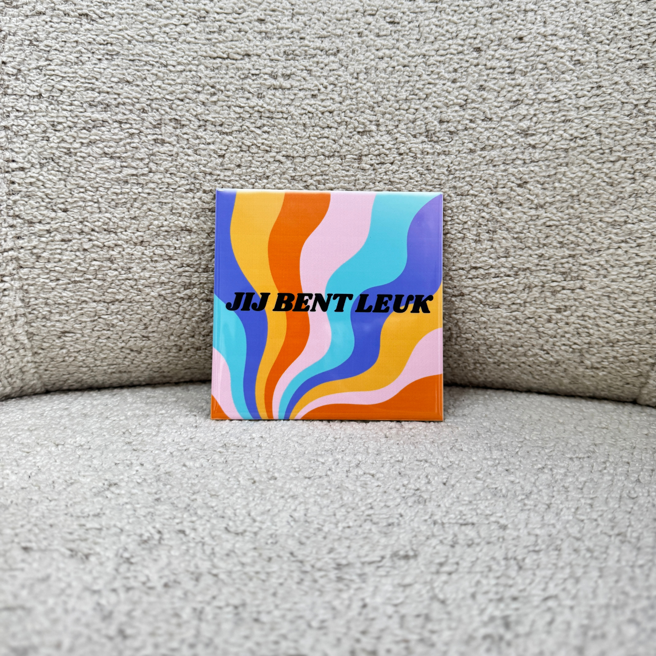 Dit kleurrijke tegeltje brengt de vrolijkheid in huis. Leuk als cadeautje voor iemand die wat extra liefde kan gebruiken of gewoon voor jezelf, want jij bent óók leuk!